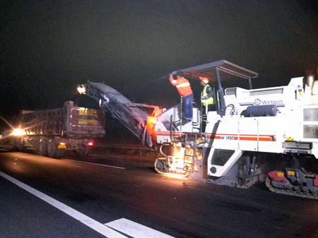 黃土嶺隧道整治工作正式啟動,維養中心人員按照分工開始隧道內舊風機和燈具拆除工作。同時,養護攻堅項目開始當天的路面銑刨工作。
