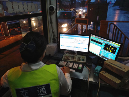 圖為高峰時期的ETC出口車道情況 為保暢通,負(fù)責(zé)ETC車道的工作人員要時刻盯著過往的車輛,對于ETC操作系統(tǒng)上顯示的誤闖車,他得馬上示意司機停車,用人工操作系統(tǒng)讀卡付費。遇ETC車輛可直接通過,不必停車取下OBU中的ETC卡再人工刷一遍,大大節(jié)省了ETC車輛在非正常情況下的通站時間。看著ETC車道源源不斷的車流,收費員小孫一邊揉著眼睛一邊說:“操作起來還蠻順手的,就是有的司機開著遠(yuǎn)光燈過來,要第一時間辨別車牌號與電腦流水相不相符,眼睛被刺得直冒金星,很痛很吃力。” 在ETC車道給非ETC車輛增加一個臨時通道的大膽嘗試,一改以往誤闖車輛進(jìn)入ETC車道后要么引導(dǎo)到旁邊人工車道收費,要么就是先手動放行,再將通行卡拿去人工車道作整車插入操作,不僅需要登記和旁站等手續(xù),又給后方車輛造成不少的等待時間。而現(xiàn)在的一個出口,兩個操作系統(tǒng),既能在第一時間讓誤闖車輛順利通行,又能保證ETC車輛不用人工刷卡就能正常地快速通過。在飽和狀態(tài)下,其通過率較之前提升12%,通行效率顯著提升,有效減少了內(nèi)廣場擁堵,減輕主線分流壓力。 鄭瑛芝
