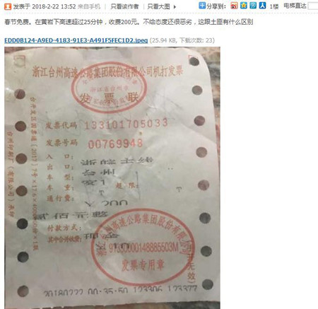 集團對此事件高度重視,當即調取當時多路監控錄像,還原了事件真相。2月22日凌晨0:29:50,投訴人駕駛小轎車進入臺州所6號車道,時間已經過了春節小客車免費通行的期限,收費員黃智超請求出示入口站的通行卡或者紙質繳費憑證,車主回答無卡無票,聲稱自己是從臨海南上進入高速。經查證,臨海南并沒有該車的入口信息。收費班長再次詢問時,車主說“忘記了”,說自己“去年過來時只付了20塊錢”,但是臺州站出口小客車最少通行費是25元(因為有代收費10元),收費班長回答不存在有“20元的通行費”,司機忽而改口說是天臺進入的,忽而想了一下又說是重慶過來的,在安徽呆了兩天,當天早上從安徽上的高速。班長再三解釋中途沒下高速未重新領票或卡,一旦過了免費期限,是哪個站入口就按哪里收費的。“浙皖主線”是安徽進入浙江的收費站,通行費(連代收費)是小客車200元。車主于0:35:46遞給收費員200元,收費員打印發票遞回,車主于0:36:15拿出手機對著收費員拍照,0:36:30駛離車道。