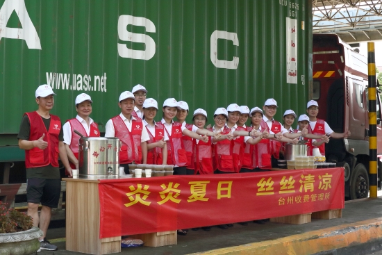 炎炎夏日 絲絲清涼 臺州收費所開展夏日“送清涼”活動 8月6日,臺州收費所開展“炎炎夏日 絲絲清涼”夏日送清涼志愿服務活動。在氣溫日益升高的三伏天里,為過往司乘人員送去絲絲清涼。