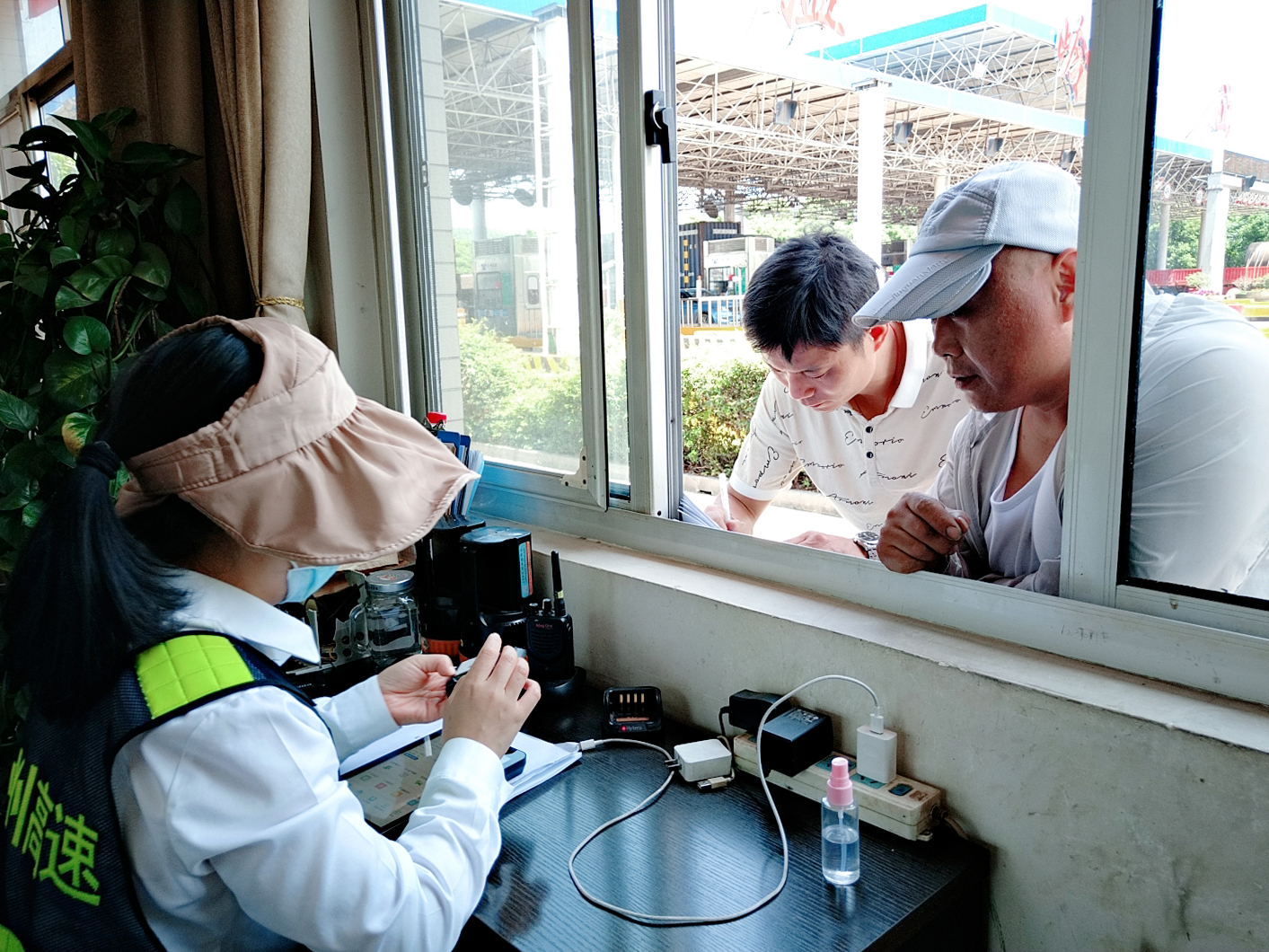 圖為收費站人員幫過往司乘激活ETC設備
