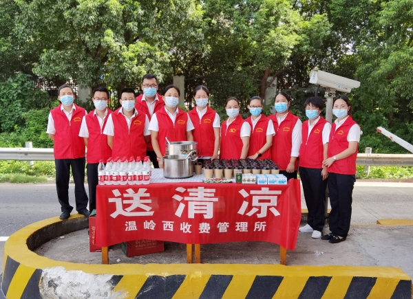 近日,連續高溫,驕陽似火,為進一步延伸文明服務,緩解司乘人員暑熱疲勞,臺州高速溫嶺西收費所組織志愿者積極開展“炎炎夏日送清涼”活動,為行駛在路上的廣大司乘送上一份夏日的清涼。