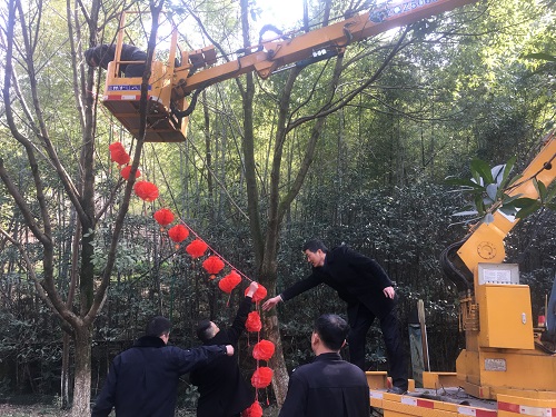 上圖為掛燈籠現(xiàn)場(chǎng)