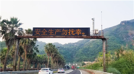 圖為情報板滾動播放安全標(biāo)語 會議要求在隧道管理所醒目位置懸掛了安全條幅,情報板滾動播放安全標(biāo)語,提示過往的司機(jī)朋友安全出行。同時在隧道所管理上増設(shè)安全員崗位,要求安全員嚴(yán)格遵循崗位職責(zé),并做好日常巡查記錄表。執(zhí)勤隊長上崗要帶紅章,既能體現(xiàn)安全員的責(zé)任感,又能讓員工看到起警示作用,讓大家時刻拉緊安全這根弦。會后,工作人員按照會議部署立即行動落實。
