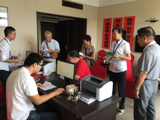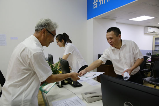 據(jù)椒江收購點工作人員朱海燕介紹,集團高齡股東較多,如果他們前來辦理,工作人員會及時上前攙扶股東到審核區(qū)坐下,核對股東是否確權(quán),審核身份證、銀行卡等資料,如果一切無誤便直接帶領(lǐng)股東到辦理區(qū)。