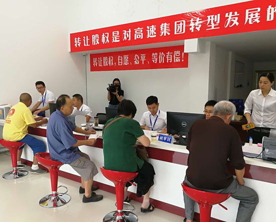 “我是經(jīng)臺州的朋友介紹,2003年時同自己公司的另外3名股東,以1.73元的價格合資買的臺州高速股份,2004年臺州高速就開始分紅了,而且每年分紅都很穩(wěn)定?!?月8日下午,來自蕭山的持165萬法人股的股東鄭天生,特意從杭州坐高鐵趕到臺州高速股權(quán)椒江收購點辦理股權(quán)轉(zhuǎn)讓手續(xù)。