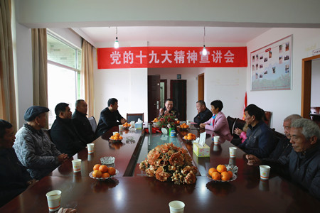 12月1日上午,公司黨委副書記、總經(jīng)理張建平在監(jiān)察室負責人的陪同下,驅車拐過山路十八彎,來到黃巖區(qū)上垟鄉(xiāng)潘山頭村宣講十九大精神。