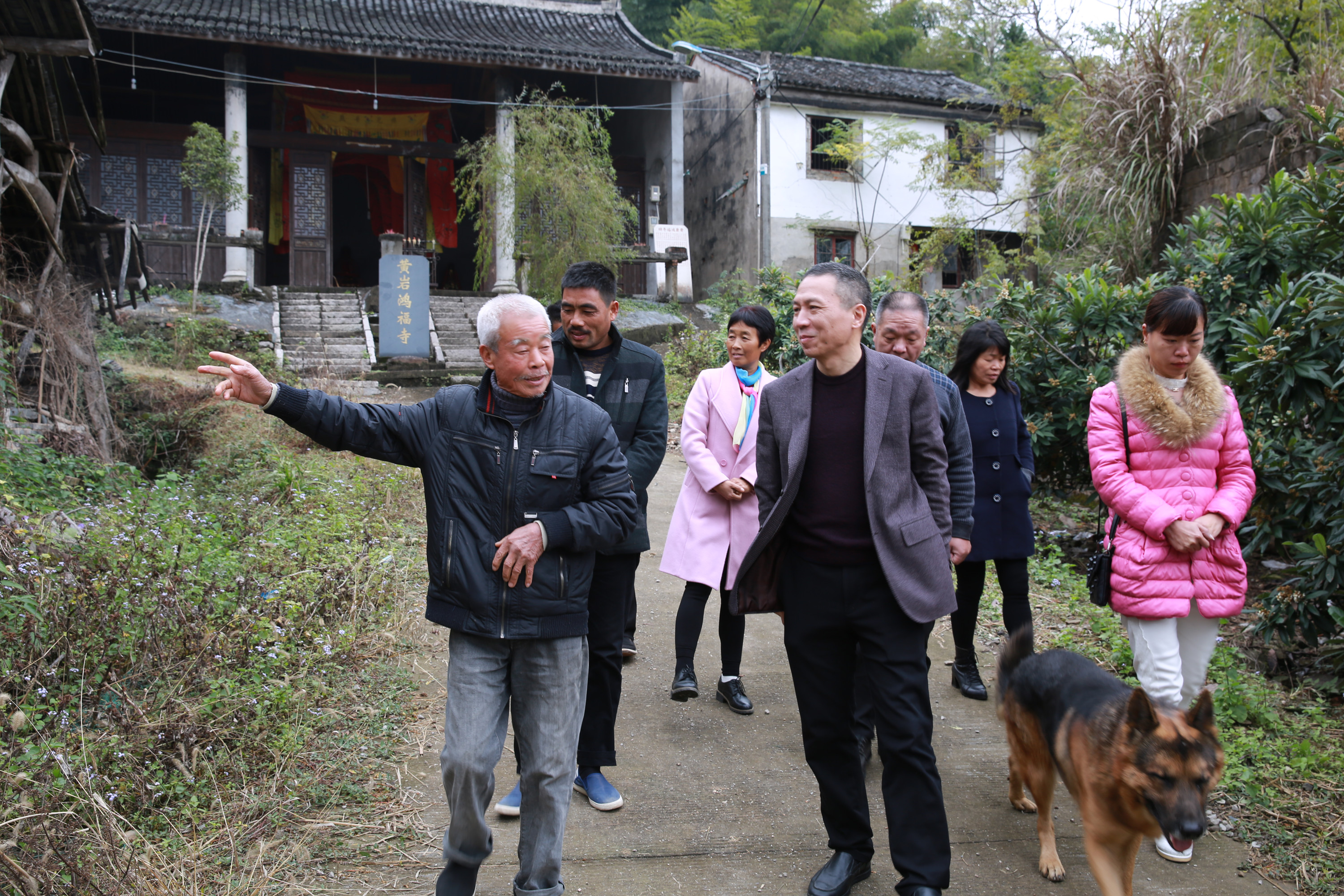圖為公司黨委副書記、總經(jīng)理張建平實地踏勘鴻福寺原址