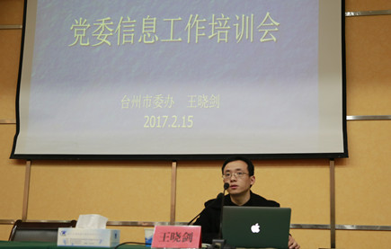 圖為市委辦信息處王曉劍處長在會上授課