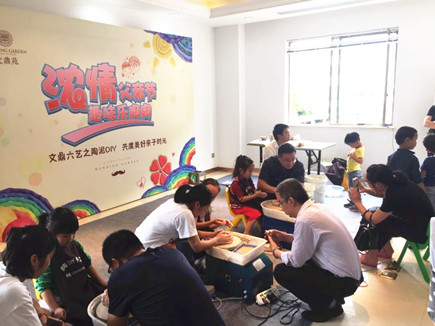突出優勢 展現亮點 文鼎苑開盤營銷逐步展開 6月18日,恰逢父親節和周末,在文鼎苑銷售展廳內,人潮涌動,人氣高漲,許多家長帶著小朋友紛紛前來參加仁和房產公司舉辦的“共度父親節文鼎六藝之陶泥DIY親子活動”。