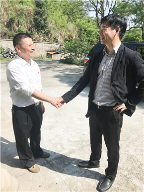 圖為陳保衛(wèi)親切慰問(wèn)塘嶺執(zhí)勤人員并與之握手