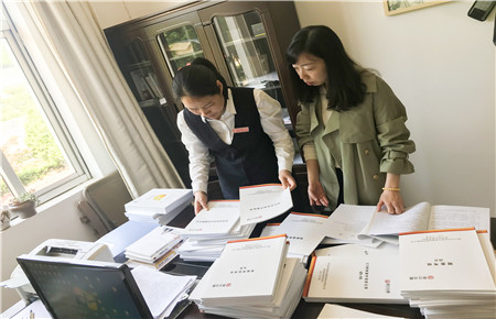 圖為人力資源部工作人員查看臨海南收費(fèi)所檔案管理情況