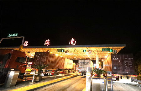 圖為臨海南收費所貨車通行場面