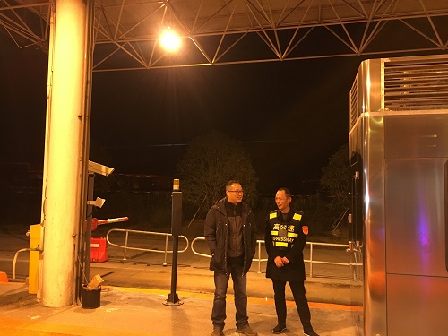 公司副總經理章海峰到收費所檢查節前車輛通行情況 再過一個小時,即將迎來節假日7座及以下小型客車免費通行時間,2月3日晚23:00,公司副總經理章海峰到集團沿線臺州南收費所,檢查了解該所車輛通行情況。