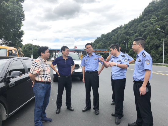 集團總工程師江輝與高速交警踏勘臨海南互通外廣場 7月19日上午,集團總工程師江輝帶領工程部、臨海南收費所相關人員與臺州高速交警支隊支隊長王辛微,副支隊長沈汝寬一行踏勘臨海南互通外廣場,對外廣場道路交通現狀開展實地調研。