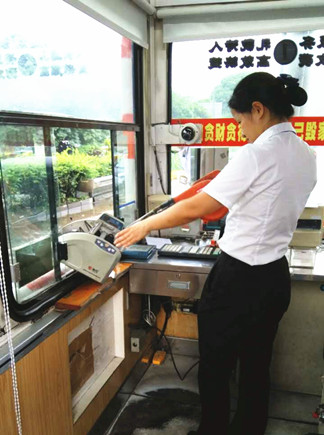 圖為工作人員正在清理驗鈔機灰塵 由于該收費站平時車流量大,收費金額比較多,使得驗鈔機長時間運轉,積累了很多灰塵,在一定程度上影響了工作效率。當天上午的所務會議便反映過此類問題,負責該項工作的狄文琦會后立馬帶上工具,輪流清理每個崗亭的驗鈔機和打印機,將灰塵從桌面到驗鈔機里全面清除干凈。副班長張竟君從旁協助,用抹布掃尾,配合相當默契,瞬間桌面提亮不少,驗鈔機工作效率也提高很多。 此次行動表明,女同志也可以很好地管理設備,保證工作正常運行。 陳豐平