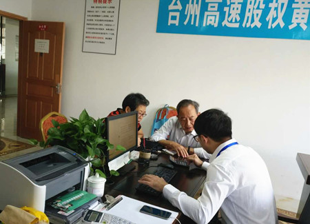 圖為黃巖收購點(diǎn)工作人員服務(wù)股東現(xiàn)場 “那時候沒錢,可咱領(lǐng)導(dǎo)干部要帶頭,這錢還是向自家兄弟借的。”這是原市府領(lǐng)導(dǎo)夫人的原話。 “科室里沒人認(rèn)領(lǐng),我想著咱也為臺州建設(shè)作點(diǎn)貢獻(xiàn),就當(dāng)捐款吧!沒想到后來真的有分紅,現(xiàn)在還有這么高的收購價,值了!”這是大多數(shù)股東的原話。