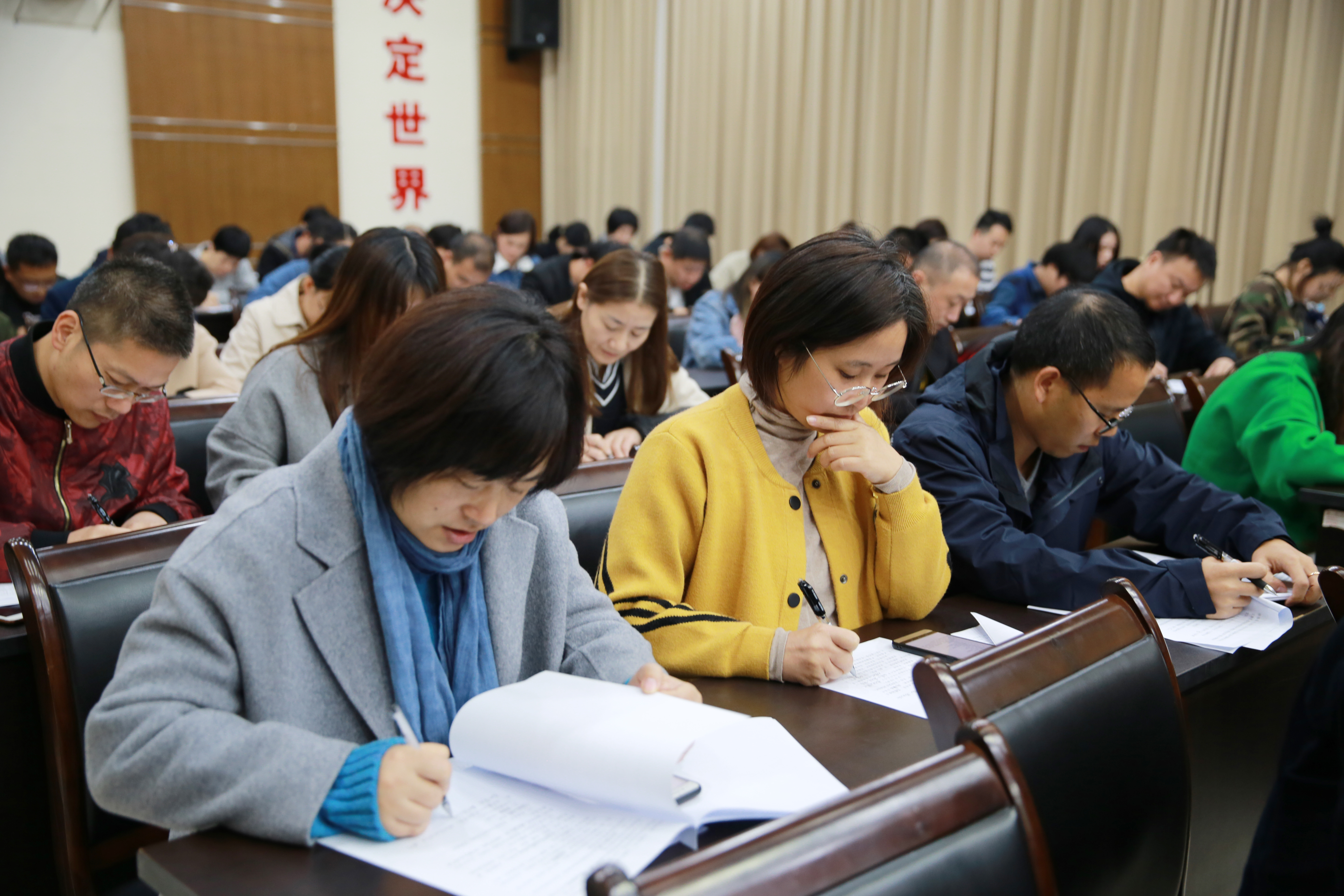 圖為測試現場 此次測試采取閉卷形式,分黨員和非黨員試題兩卷,測試范圍包括“不忘初心、牢記使命”主題教育、十九大報告及習近平新時代中國特色社會主義思想等知識。大樓近100名員工參加測試。 此次測試既是對學習效果的檢驗考核,又是對學習成果的鞏固提升,將進一步激發全體員工學習的主動性和積極性,使政治信念更加堅定、理論知識更加充沛、工作熱情更加高漲、行動更加積極務實,真正起到了以考促學、以考促記、以考促行的目的。大家紛紛表示要以此次知識測試為東風,鼓足干勁、學以致用,勇于擔當、忠誠履職,在平凡的崗位上干出優異成績,努力開創各項工作新局面。 馮曉潔