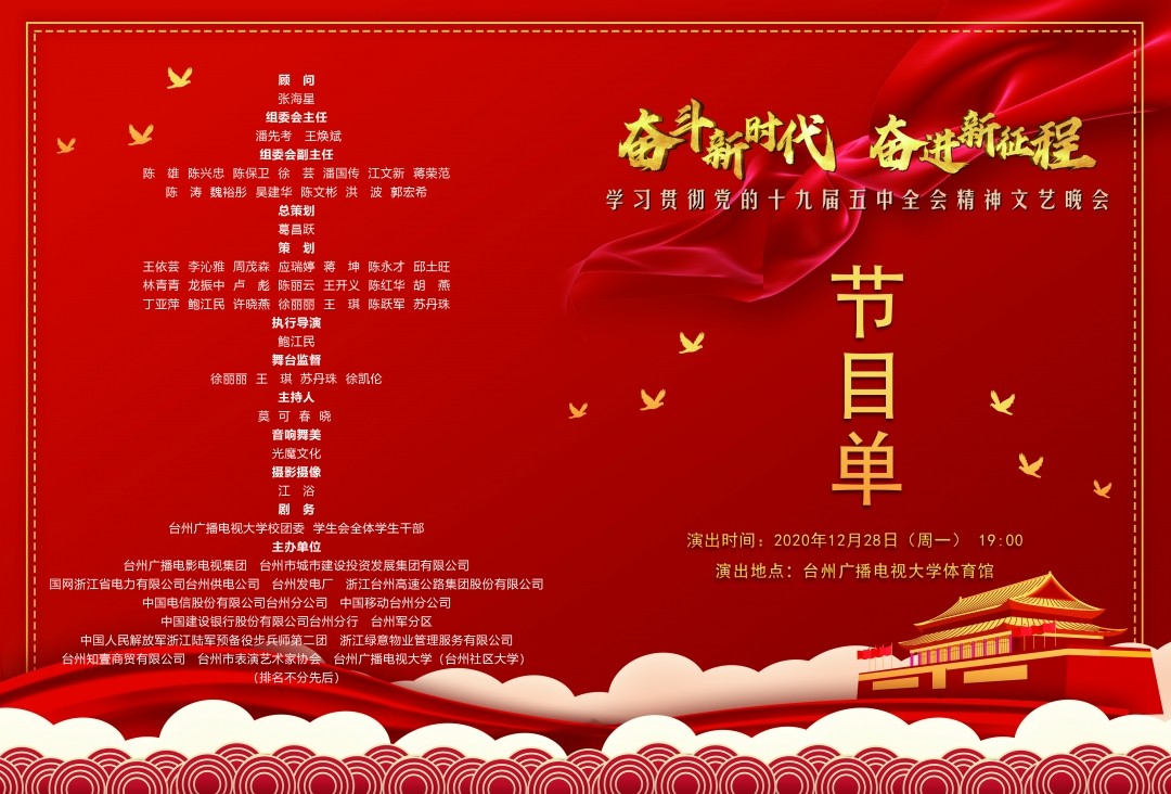 12月28日晚,學(xué)習(xí)貫徹黨的十九屆五中全會精神文藝晚會在臺州廣播電視大學(xué)體育館舉行,資產(chǎn)部副經(jīng)理林軍代表集團公司參加演出,團委相關(guān)人員出席晚會。