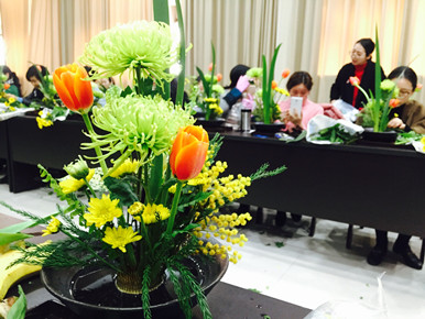 3月8日下午,公司47名女員工歡聚一堂,開展了一次具有古樸風韻的插花活動。活動邀請了中國插花花藝協會理事、臺州市花藝文化研究會會長蘇群老師作指導。