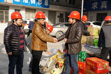 上圖為慰問現(xiàn)場 每到一個標段,慰問組都詳細了解項目當前施工情況以及春節(jié)期間的工作安排,為他們送上了慰問品,對于那些臨近春節(jié)仍奮戰(zhàn)在工地一線的工人們,慰問組代表市政公司表達了衷心的感謝,并提早向全體工作人員致以新春佳節(jié)的祝福。 鐘彪指出,內(nèi)環(huán)路(黃巖段)在2017年度建設(shè)時間緊,任務(wù)重,各項目部在搶抓工程進度的同時要注重安全生產(chǎn),關(guān)心工人生活,保障工人人身和財產(chǎn)安全,特別是過年期間,各項目部負責(zé)人和值班人員要保持24小時通訊暢通,保證各項工作正常運轉(zhuǎn),確保平安過節(jié)。 張琛